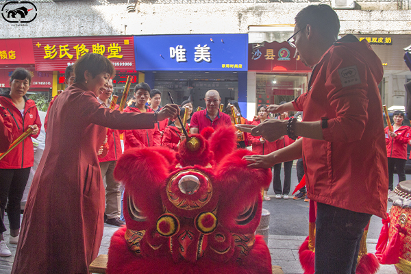最引人注目的是紅色大獅子,看我們的睿牛總經(jīng)理親自給它畫龍點(diǎn)睛,舞姿勇猛而雄偉,氣概非凡。它當(dāng)作勇敢和力量的象征,以祈望生活吉祥如意,事事平安。寓意著新的一年里紅紅火火、生意興隆!