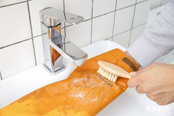 3、使用大量的清水進行漂洗,一定要將洗滌劑徹底漂洗掉;對于局部頑漬可以用海綿或棉布直接蘸適量洗滌液擦拭。用中性洗滌劑的洗滌過程中不必?fù)?dān)心傷及皮膚,清洗之后漂洗至水清即可。