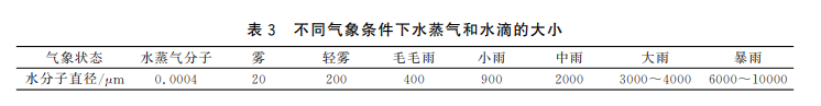 動態(tài)防水性能檢驗主要是評價沖鋒衣面料在運動狀態(tài)中的拒水性。我們可以根據(jù)不同氣候條件下水蒸氣、水滴大小來設置實驗。其中邦迪斯門淋雨法可以模擬不同氣候中的雨滴大小和雨量,具體見下圖,但也沒有檢驗標準。