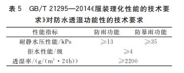 根據(jù)GB/T 21295-2014《服裝理化性能的技術要求》,沖鋒衣只有達到一下指標才能算具備防水、透濕的功能。